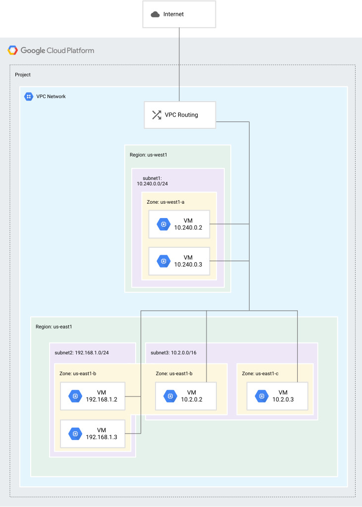 subnet: subnet 내에서 CloudSQL, VM 등의 리소스를 위치시킨다
