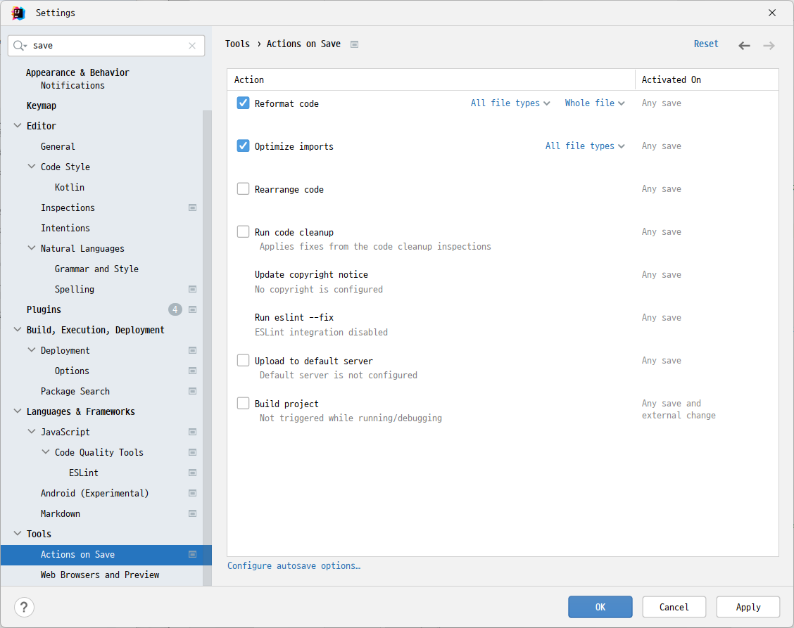 4. 저장 시 코딩 컨벤션 자동 적용 설정하기